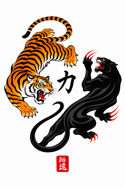 Yin Yang Tiger Panther Tattoo Design, Duality Animal Art, Silhouette Merch, PNG Download
